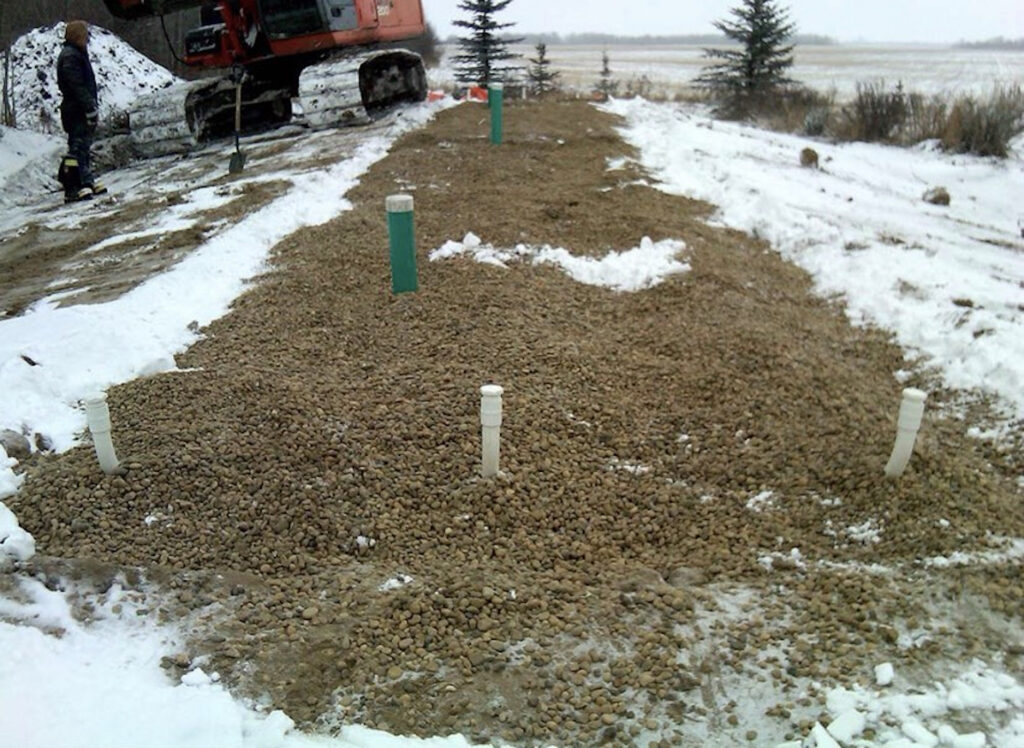 Mound systems are used when soil conditions don’t allow for standard in-ground systems.